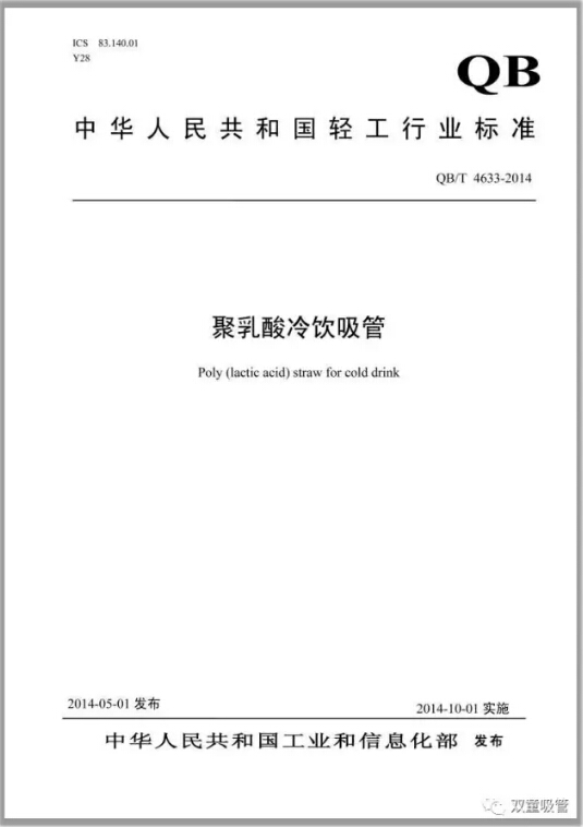 “雙童”主導起草的 QB/T《聚乳酸冷飲吸管》國家行業(yè)標準