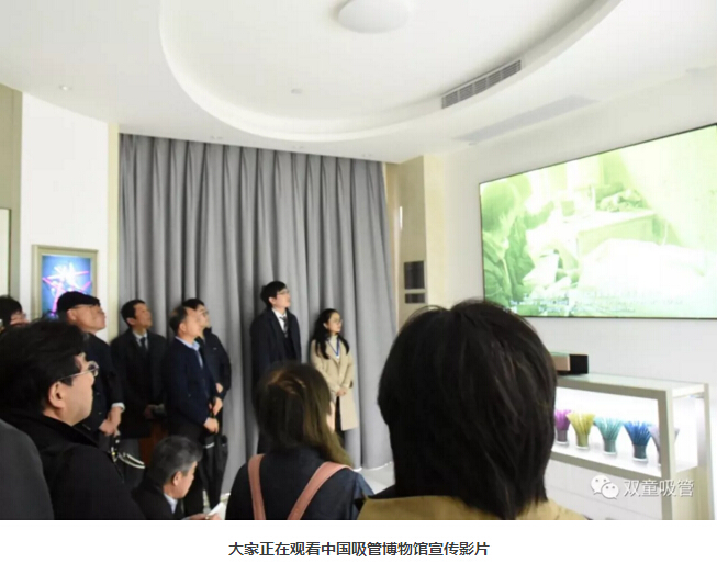 此次,坂本光司老師再次帶隊來(lái)到“雙童”參觀(guān),希望能夠影響更多日本企業(yè)主學(xué)習“雙童”的人本經(jīng)營(yíng)模式!首先,在參觀(guān)的第一站,吸管妞就帶著(zhù)參觀(guān)團隊來(lái)到了中國吸管博物館。大家首先觀(guān)看了中國吸管博物館宣傳影片,對吸管上千年的發(fā)展歷史和演變過(guò)程有了一個(gè)全面的了解!