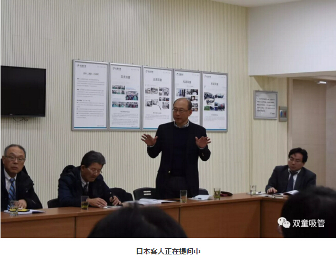 被提問(wèn)的員工也闡述了自己的看法:“‘雙童’的工作環(huán)境、福利待遇很好,鼓勵員工在公司內部結婚成家、養育小兒、就學(xué)安居,形成‘家文化’氛圍,最大程度上解決了我們的后顧之憂(yōu)!最嚴格的是公司的規章制度和對產(chǎn)品質(zhì)量的重視程度,不斷影響我們的內心做出優(yōu)質(zhì)的產(chǎn)品……” 員工們的回答也引起了日本客人們的陣陣掌聲!