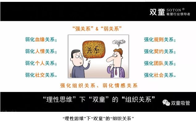 受到西方“理性思維”的影響和推動(dòng),“雙童”創(chuàng )立了一套組織關(guān)系哲學(xué),用來(lái)弱化血緣關(guān)系,強化規則關(guān)系;弱化人情關(guān)系,強化契約關(guān)系……