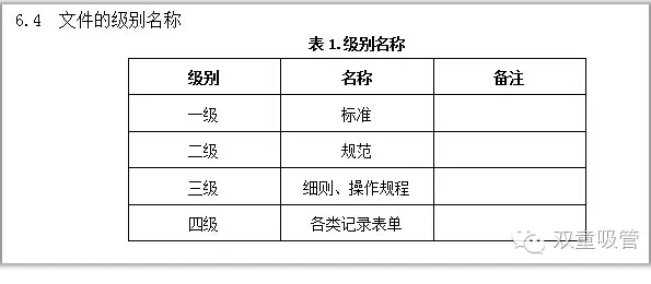 第三層次文件:管理細則、操作規程、技術(shù)標準等作為各部門(mén)運行管理活動(dòng)的常用實(shí)施細則:包括管理標準、操作流程、技術(shù)標準(國家標準、行業(yè)標準、企業(yè)標準及作業(yè)指導書(shū))等;