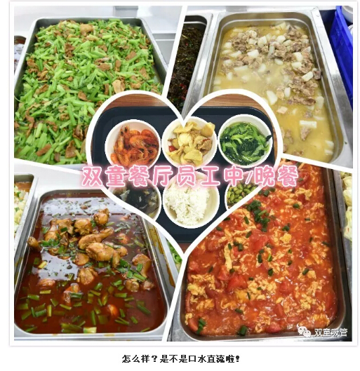 除了早餐之外,中餐和晚餐就更加豐盛啦,都是三菜一湯的標準。一葷兩素營(yíng)養搭配,每天都不一樣哦!除此之外,還有夜宵,員工們進(jìn)了“雙童”可得胖三斤呀!