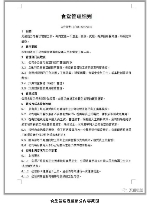 對于餐飲的管理,我們也有一系列的制度文件支撐!從1997年開(kāi)始,“雙童”就對食堂進(jìn)行了規范管理,制定了很多的管理型文件!