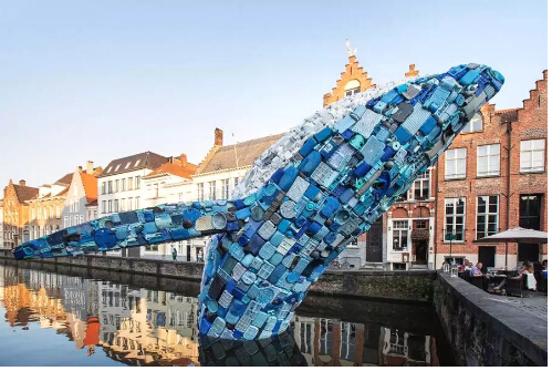 該作品以躍姿鯨魚(yú)的被安置在比利時(shí)城市的主要運河中供游客參觀(guān),這一令人印象深刻的裝置作品旨在讓人們關(guān)注海洋中數量巨大的塑料廢棄物等海洋垃圾壞境問(wèn)題。