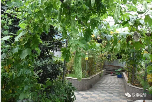 讓我們再來(lái)看看屋頂菜園變“瓜”園的豐收景色: