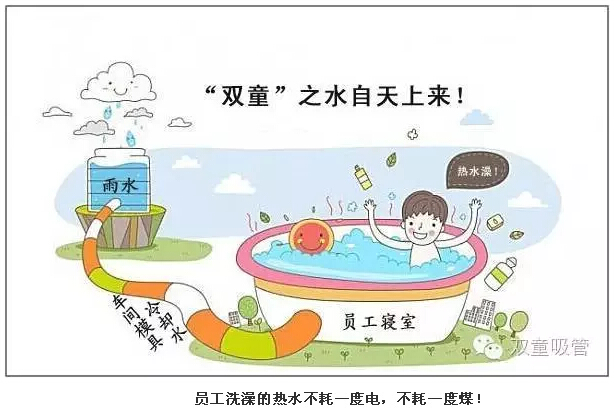 通過(guò)“雨水收集系統”,“雙童”每年可收集到5至6萬(wàn)噸雨水;通過(guò)“廢水處理收集循環(huán)系統”,企業(yè)每年可節省水費支出40余萬(wàn)元;通過(guò)“設備余熱水采集利用循環(huán)系統”,可以實(shí)現員工洗澡的熱水不耗一度電、不燒一斤煤,全部使用雨水在設備上形成的余熱水。