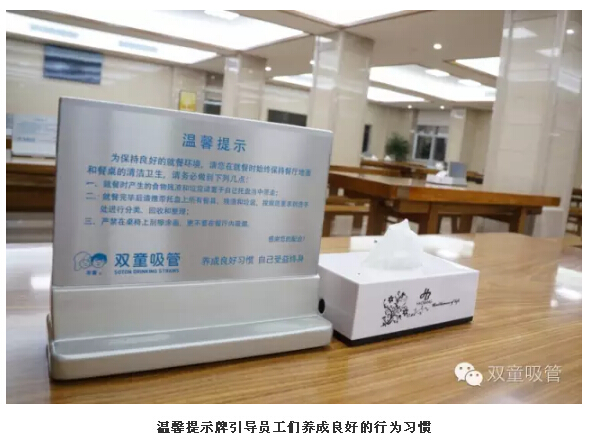 瞧!在每張餐桌上,都放著(zhù)一塊精致的標牌,溫馨提示著(zhù)員工在就餐時(shí)哪些事情應該做,哪些事情不能做,一目了然!