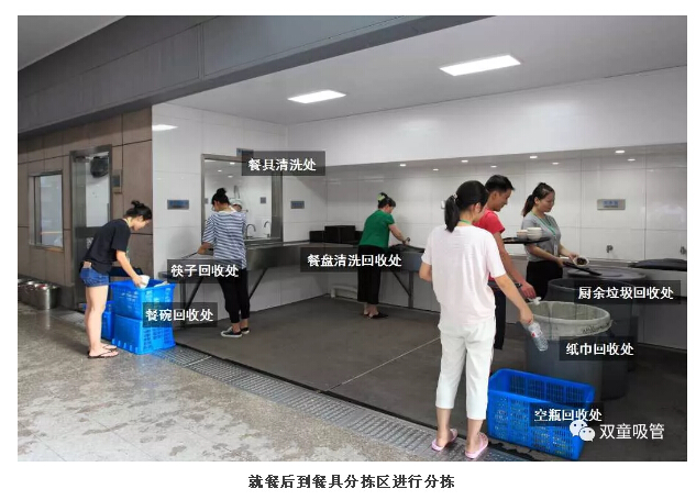 5、最后,我們來(lái)到餐具分揀區,將餐余垃圾、紙巾、飲料瓶等分揀完畢就完成咯!不用洗碗的人生真是太幸福啦!
