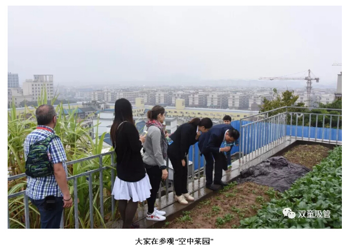 最后,大家來(lái)到了“空中菜園”,一走進(jìn)菜園,大家看到眼前的一大批蔬菜瓜藤,仿佛一下子進(jìn)入了另外一個(gè)世界??旨{女士對“雙童”的屋頂上竟然種了這么多的“寶貝”感到不可思議!