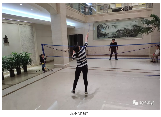 在熟悉比賽規則后,第一組選手閃亮登場(chǎng)!沒(méi)想到一開(kāi)場(chǎng)就來(lái)了個(gè)“霸氣扣球”,兩位選手你一球他一球,把每個(gè)球都打得強勁飛舞!邊上還沒(méi)上場(chǎng)的小伙伴們,也蠢蠢欲試啦!