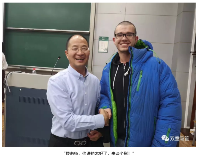講完課后一位外國帥哥竟主動(dòng)上前和樓總說(shuō):樓老師,你講的真好!我大部分都能聽(tīng)懂!最后,樓總也和這位洋學(xué)生來(lái)了個(gè)大合影!