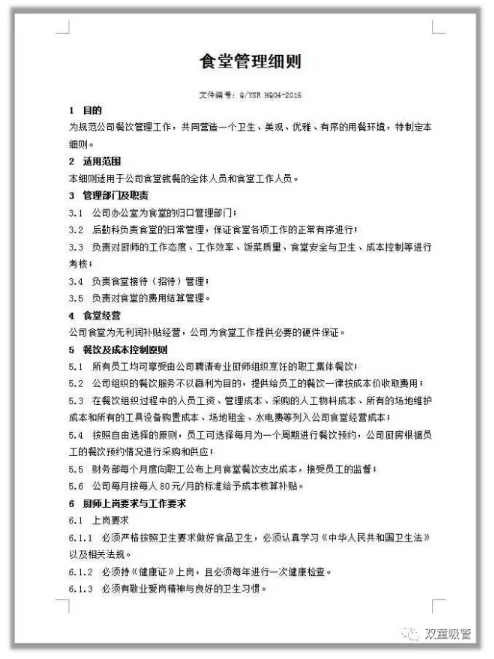 “雙童”食堂管理細則,涉及到餐飲管理的各個(gè)方面