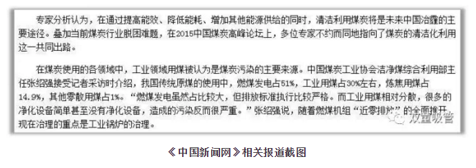 中國煤炭工業(yè)協(xié)會(huì )張紹強主任接受記者采訪(fǎng)時(shí)介紹,我國傳統原煤的使用中,工業(yè)用煤占30%左右。在煤炭使用的各領(lǐng)域中,工業(yè)領(lǐng)域用煤被認為是煤炭污染的主要來(lái)源。