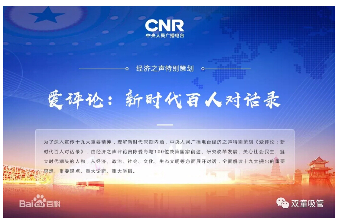 近日,中央人民廣播電臺經(jīng)濟之聲播出《愛(ài)評論:新時(shí)代百人對話(huà)錄》改革開(kāi)放四十周年特輯。其中,也播出了經(jīng)濟之聲首席評論員陳愛(ài)海對話(huà)“雙童”樓仲平的專(zhuān)訪(fǎng)節目!