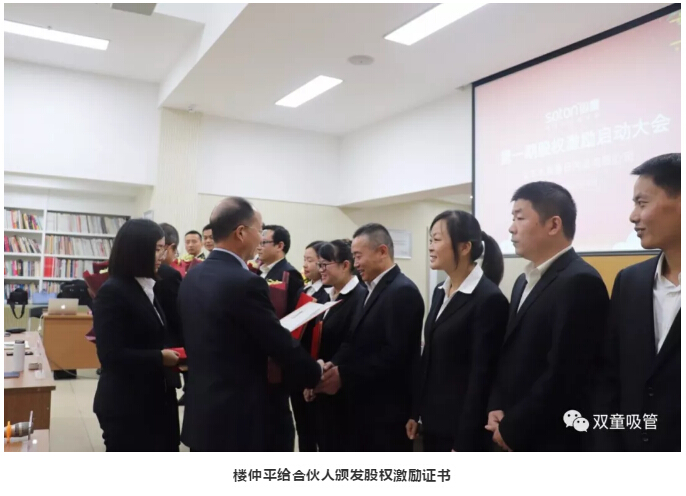 “我終將老去,但機制改革將讓‘雙童’持續保持年輕,感謝所有的員工,感謝首批追隨我的12位小伙伴們,感謝泰山管理學(xué)院鼎力幫助‘雙童’完成股權激勵工作!”