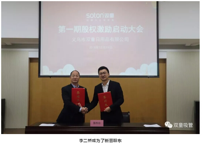 而在今年的12月19日,在“雙童”第一期股權激勵啟動(dòng)大會(huì )上,“雙童”首批12位核心員工正式簽約成為“雙童”的經(jīng)營(yíng)伙伴,我們以股份合伙、業(yè)務(wù)合伙等“合伙激勵”的 方式讓優(yōu)秀人才變?yōu)楹匣锶?,讓員工和組織的目標長(cháng)遠契合、共同生長(cháng)、共享價(jià)值創(chuàng )造的有效延伸!