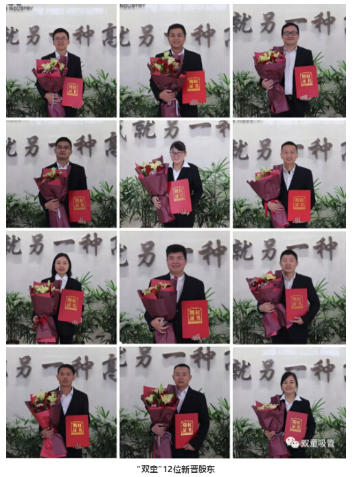 12月19日,對“雙童”來(lái)說(shuō),是代表著(zhù)夢(mèng)想、激情、奮斗的一天!在這一天,雙童吸管第一期股權激勵啟動(dòng)大會(huì )在“雙童”九樓閣隆重舉行!“雙童”首批12位核心員工成為了“雙童”的經(jīng)營(yíng)伙伴,一起互相陪伴,走向未來(lái)!