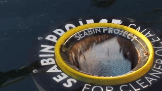 海洋里的垃圾就會(huì )被吸進(jìn)桶里的纖維袋內。