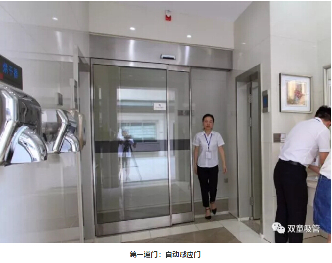 5、完成洗手消毒之后,要進(jìn)入風(fēng)淋室進(jìn)行風(fēng)淋除塵。