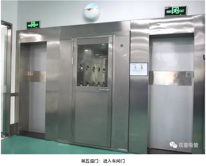 5.員工們風(fēng)淋后經(jīng)過(guò)第五道車(chē)間入口門(mén),進(jìn)入車(chē)間進(jìn)行生產(chǎn)工作。