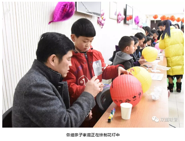 親子親密互動(dòng),巧繪花燈