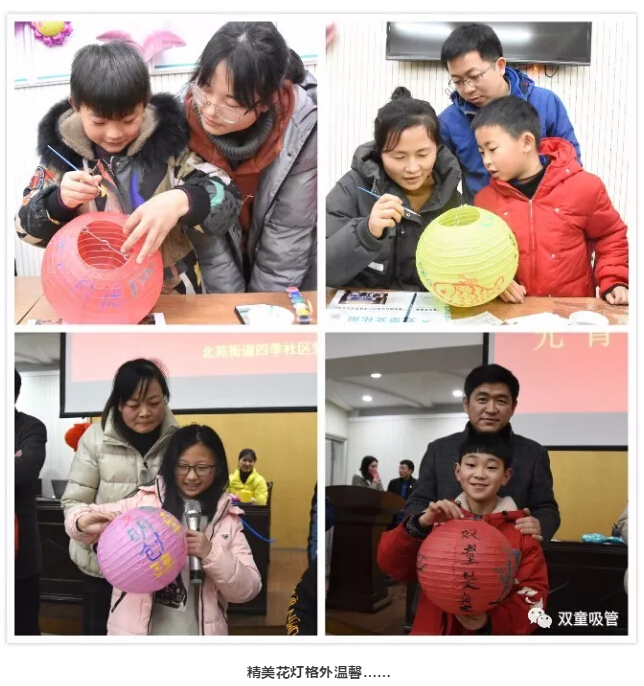 “雙童是我家,我們愛(ài)護它”,“同心同德,同心同向,同心同行”……小小的燈籠經(jīng)過(guò)描繪后,顯得格外溫馨……