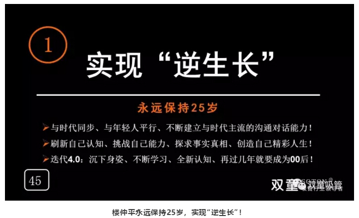 他說(shuō),雖然自己的生理年齡不再年輕,但是他把自己的心理年齡一直定位在25歲,還有很多東西要學(xué)習,積極擁抱這個(gè)高速變化的世界,從而不讓自己老去,不讓團隊老去,從而不讓企業(yè)老去!