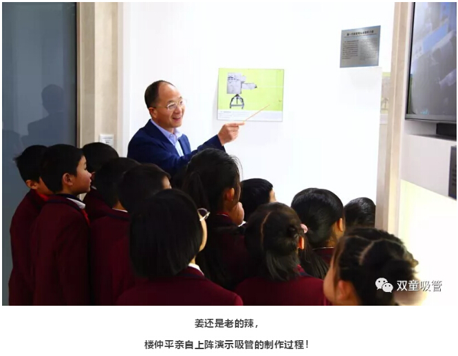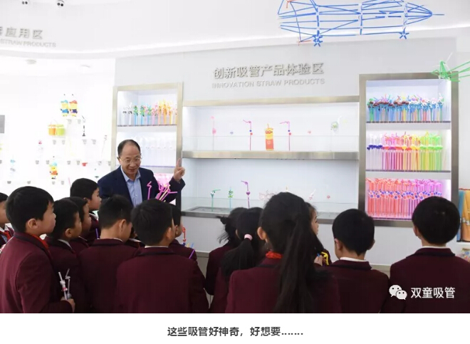 參觀(guān)結束后,“雙童”樓仲平也向孩子們說(shuō)道:再過(guò)一段時(shí)間,“雙童”將會(huì )推出可以“吃”的吸管,喝完飲料以后可以選擇將吸管“吃”下。聽(tīng)到這大家紛紛問(wèn)道:是不是巧克力味的......這根能“吃”的吸管讓孩子們十分激動(dòng)和期待呢!