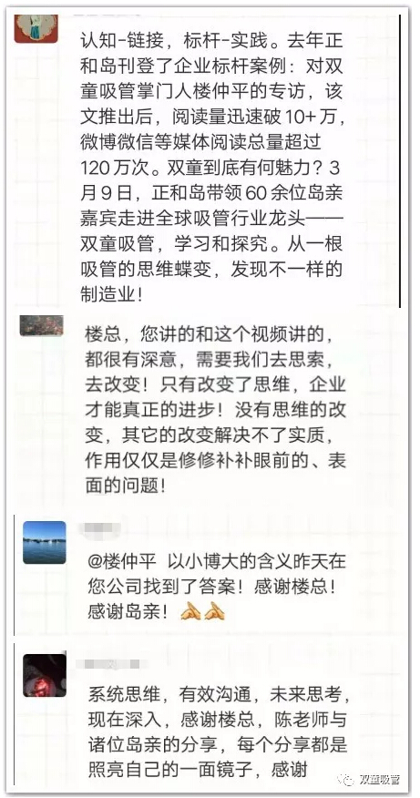 3月9日,正和島70位浙江企業(yè)主走進(jìn)“雙童”,探尋“一根吸管”背后的經(jīng)營(yíng)管理哲學(xué)……
