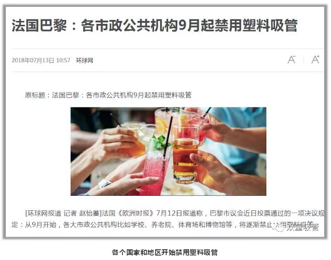 緊接著(zhù),越來(lái)越多的國家和機構開(kāi)始行動(dòng),如:法國、西班牙、新西蘭等國全面限塑,星巴克、麥當勞、迪士尼等機構也開(kāi)始禁用塑料吸管……