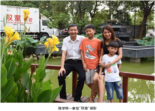 事業(yè)蒸蒸日上的同時(shí),陳學(xué)森也在“雙童”有一個(gè)幸福小家庭。2013年,陳學(xué)森把老婆張新宇也接來(lái)“雙童”上班,每逢暑假,他們的兩個(gè)兒子也會(huì )到“雙童”和父母團聚,一家人在一起其樂(lè )融融。2016,陳學(xué)森也購置了他心儀已久的車(chē)子,圓了他的一個(gè)夢(mèng)。