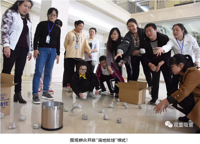 最后一個(gè)游戲就是“空桶投球”。這個(gè)游戲相信大家都不陌生,小時(shí)候在夜市上肯定有玩過(guò),投中幾個(gè)球,就能換取小玩具!在這個(gè)游戲中,我們也發(fā)現了投球高手!吸管妞都忍不住想為他點(diǎn)贊!