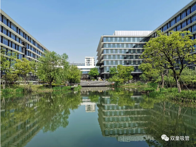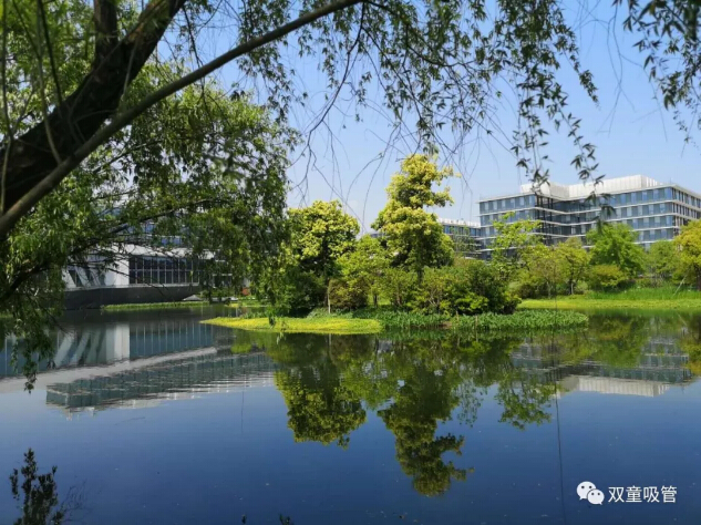 離開(kāi)辦公區,漫步在園區內,建筑、樹(shù)木倒影在水中,景色真是太美了!