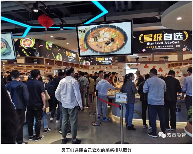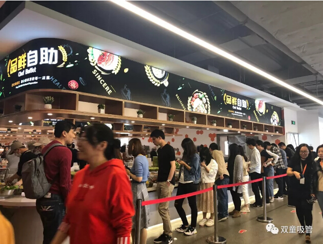 杭州西溪總部的阿里食堂一共有5個(gè)食堂,每天有2萬(wàn)余人在這里就餐!
