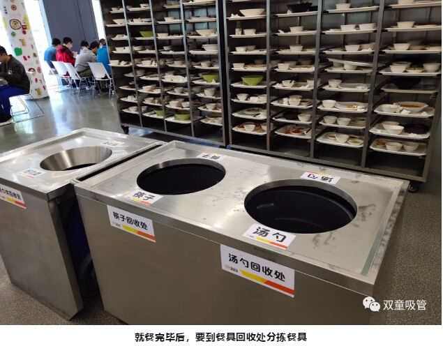 就餐結束后,我們跟著(zhù)阿里員工來(lái)到餐具回收處,將紙巾、飲料瓶、筷子、湯勺等進(jìn)行分揀,放入傳送帶中方可離開(kāi),不用洗碗的人生真是太幸福啦!
