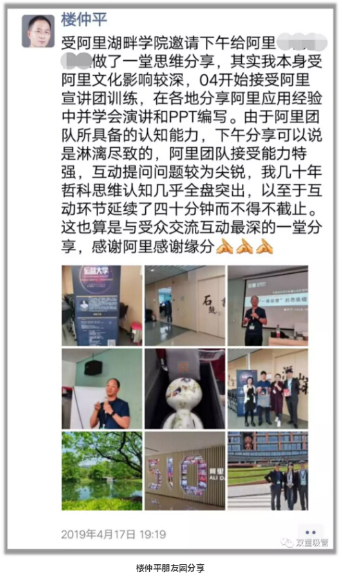 在提前一個(gè)月預約樓仲平課程的過(guò)程中,阿里巴巴方也希望樓仲平講一些能夠促進(jìn)內外思維碰撞的課程,這也正好與樓仲平近年來(lái)的課程主題十分吻合。因此,對于再次和阿里巴巴結緣,樓仲平也在朋友圈里感慨到:感謝阿里感謝緣分!