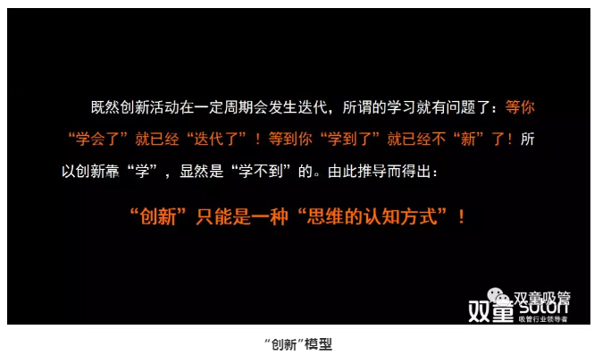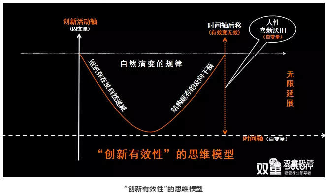 經(jīng)過(guò)前兩個(gè)“思維模型”的鋪墊,最后,樓仲平引導大家認知:昨天還是“創(chuàng )新”的東西,今天就未必還是“新”。所以,“創(chuàng )新”是有“時(shí)間軸”的,隨著(zhù)“時(shí)間軸”不斷后移,原有的“創(chuàng )新”有效變成了無(wú)效,創(chuàng )新活動(dòng)也就“無(wú)窮無(wú)盡”!