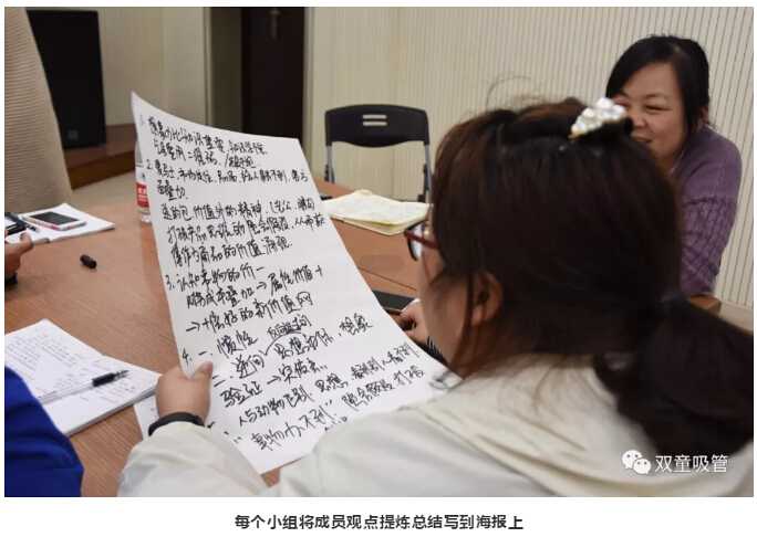 以上片段,是“雙童”第274期行政學(xué)習會(huì )上復盤(pán)學(xué)習的精彩視頻。在當天的學(xué)習會(huì )上,所有同學(xué)被分為7個(gè)小組,每位成員開(kāi)動(dòng)腦筋,總結提煉出本小組觀(guān)點(diǎn)后派代表分享,從而和其他小組成員進(jìn)行思想交流和思維碰撞!