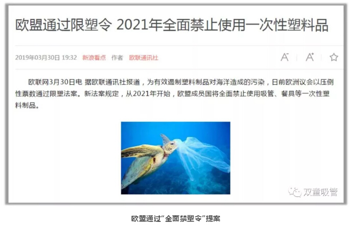 由于塑料制品對環(huán)境和動(dòng)物造成的傷害,全球掀起了限塑熱潮!世界各國也都發(fā)起了“最后一根塑料吸管”運動(dòng),越來(lái)越多的機構都開(kāi)始拒用塑料吸管……