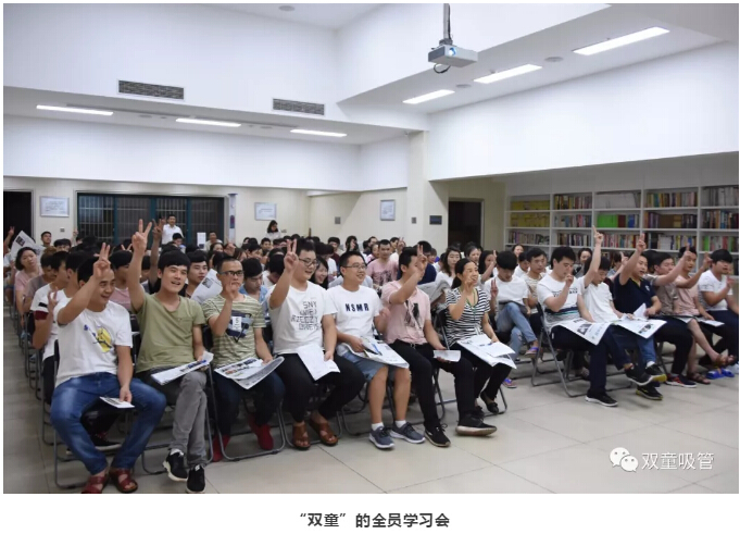 在“雙童”,為了能夠在企業(yè)內部形成濃厚的學(xué)習氛圍和有效的學(xué)習機制,我們?yōu)閱T工制定了長(cháng)遠的學(xué)習規劃和目標。首先,在“雙童”每個(gè)月都要舉辦全體員工的學(xué)習會(huì ),確保所有員工每月有累計八小時(shí)的學(xué)習和培訓。無(wú)論是掃地阿姨還是看門(mén)叔叔,都必須參加全員學(xué)習會(huì ),以提高自身認知水平!