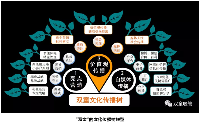 “雙童”的傳播工作主要通過(guò)亮點(diǎn)營(yíng)造、自媒體傳播、價(jià)值觀(guān)傳播三大模塊來(lái)實(shí)現。下圖就是“雙童”的文化傳播樹(shù)模型。