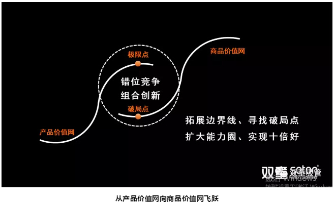 由此,“雙童”通過(guò)錯位競爭和組合創(chuàng )新的方式,從產(chǎn)品價(jià)值網(wǎng)跳躍到商品價(jià)值網(wǎng),實(shí)現十倍好!