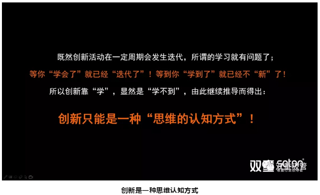 所以創(chuàng )新是不斷迭代的,靠“學(xué)”,顯然是“學(xué)不到”,創(chuàng )新只能是一種“思維認知方式”。