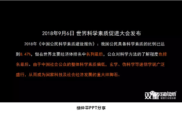隨后,課程進(jìn)入到第二個(gè)主題的分享。樓仲平引導大家認知:“創(chuàng )新”是一種科學(xué)的方法論,并引用了2018年《中國公民科學(xué)素質(zhì)建設報告》中的一段話(huà):