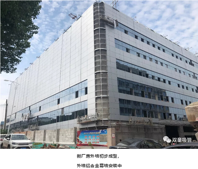 “雙童”二期智能化工廠(chǎng)按高規格的商業(yè)建筑等級設計,在大樓的外墻材料選擇上,“雙童”選擇了高等級的鋁合金幕墻材料,鋼性好、重量輕、強度高,耐腐蝕性。如今,廠(chǎng)房外墻已初步成型,工人正在安裝鋁合金幕墻和窗戶(hù),施工完畢后將更具現代感和科技感!