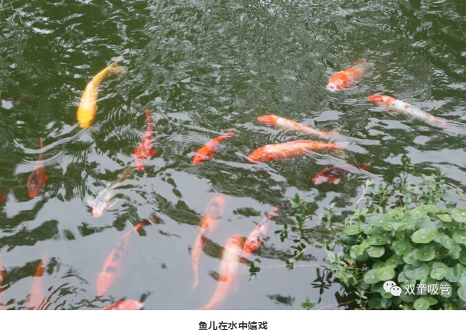 清風(fēng)吹拂過(guò)荷塘,花瓣隨風(fēng)輕輕搖擺,帶來(lái)陣陣荷花獨有的清香。景觀(guān)湖中的魚(yú)兒成群結隊游動(dòng),現場(chǎng)一派生機勃勃的景象。