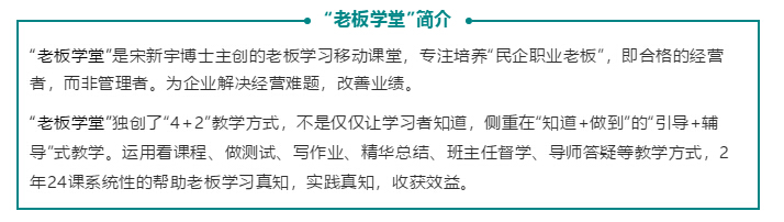 其實(shí),“雙童”樓仲平與老板學(xué)堂的淵源頗深。早在2012年,樓仲平就關(guān)注到了宋新宇博士的管理理念,購買(mǎi)了他撰寫(xiě)的《讓管理回歸簡(jiǎn)單》,讓“雙童”行政人員學(xué)習。