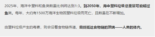 由塑料垃圾產(chǎn)生的毒素,則會(huì )沿著(zhù)食物鏈傳遞,最終抵達食物鏈的頂端——人類(lèi)的體內。