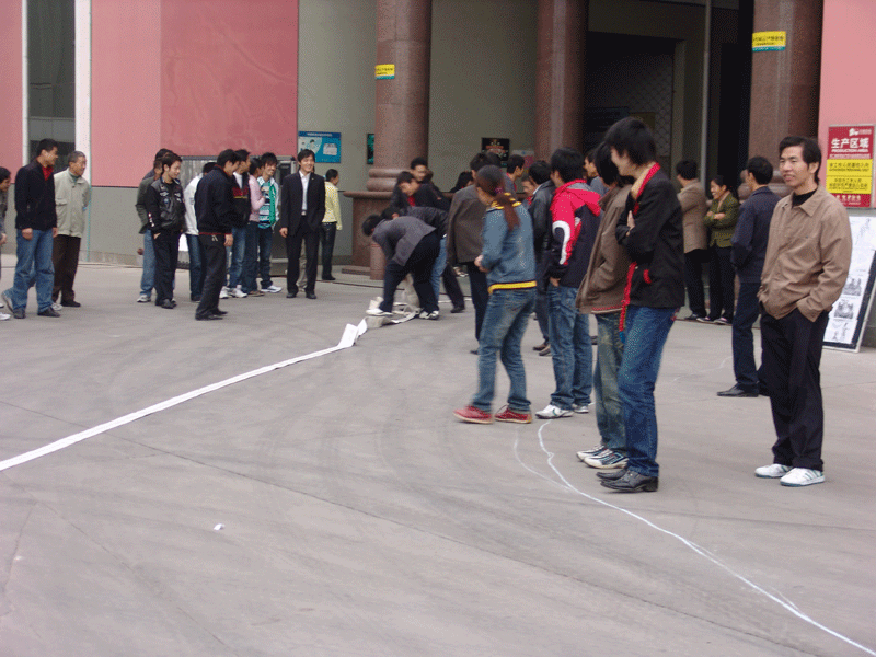 上圖為員工使用干粉滅火器進(jìn)行滅火比賽現場(chǎng)