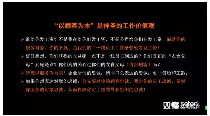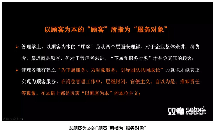 第二問(wèn)題:對于管理者來(lái)講“以顧客為本”的顧客是一線(xiàn)員工。